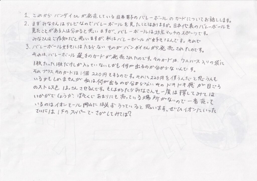 発表も、内容もよく出来ておりバレーボールについてのルールも丁寧にされておりました。