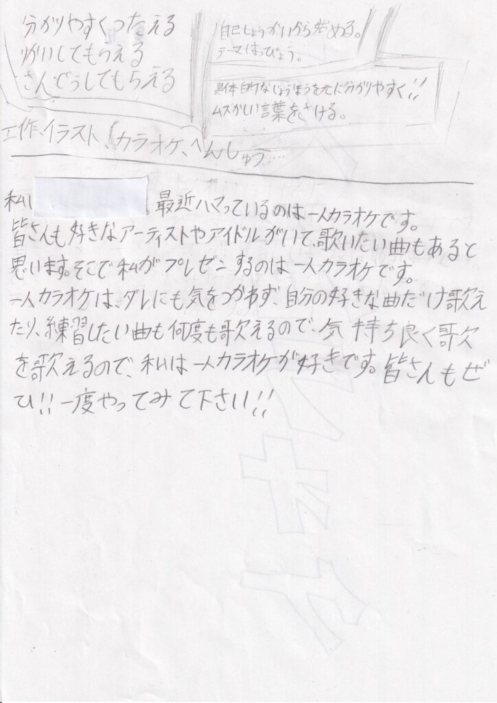 そんな彼女も一緒にプレゼンのプログラムに参加をしてもらい「好きなこと」を考えてくれました。